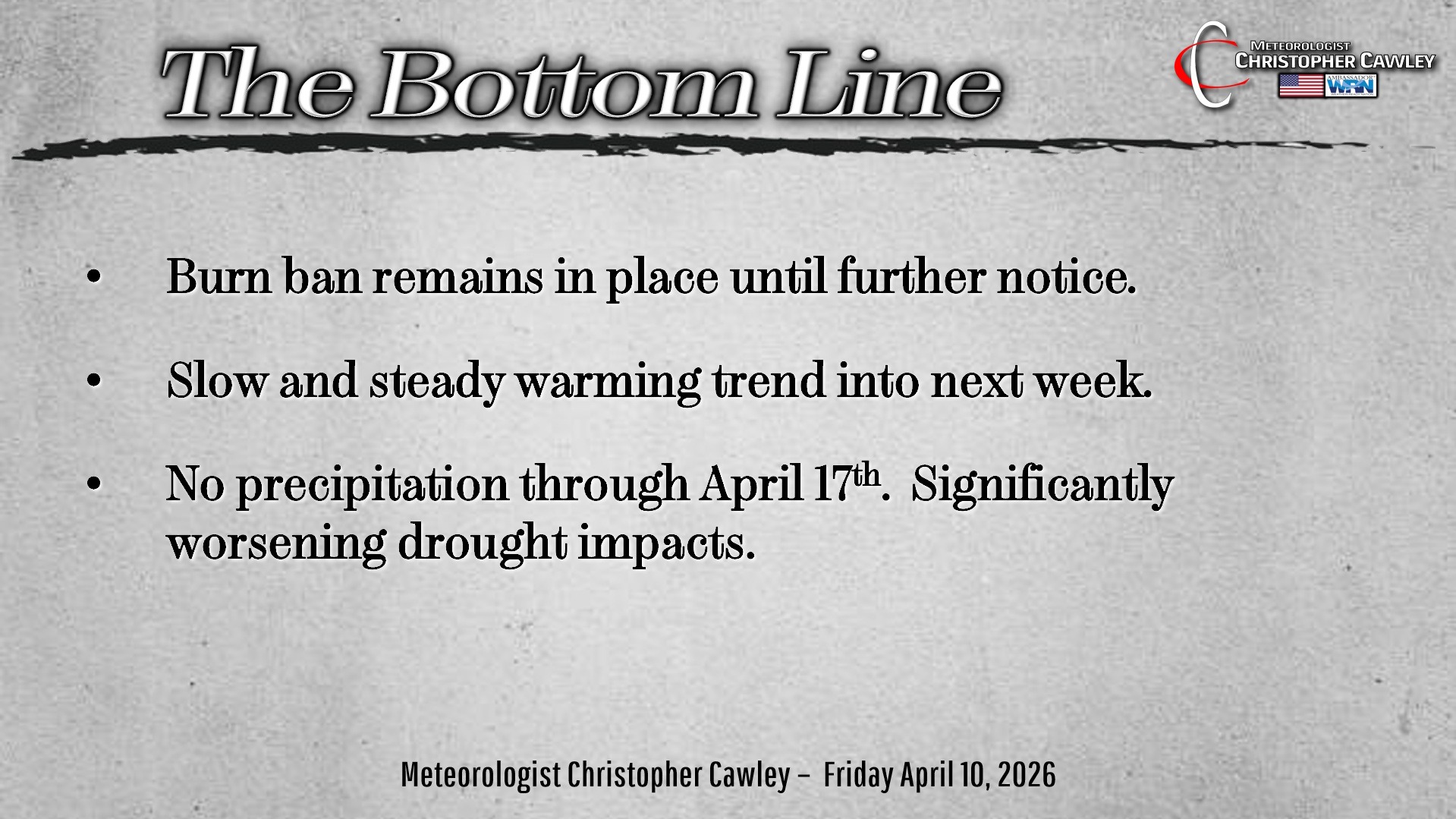 CCN Weather Update for Friday April 10, 2026.