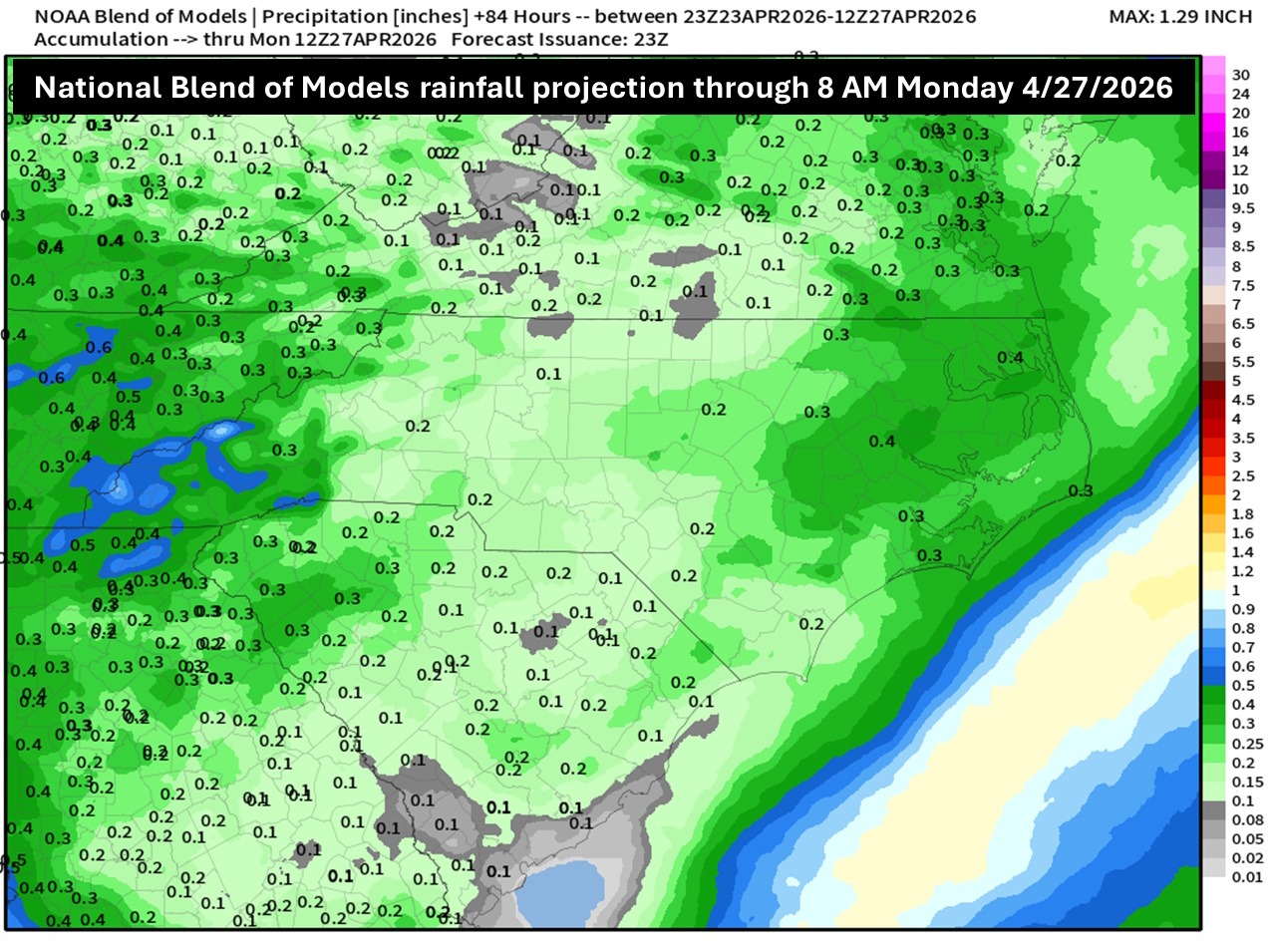 But that where the good news really ends. The latest model blends have trended down a little bit with regard to rain totals — now only about a quarter of an inch for the area. Some areas might pick up more, but that’ll be the exception rather than the rule.