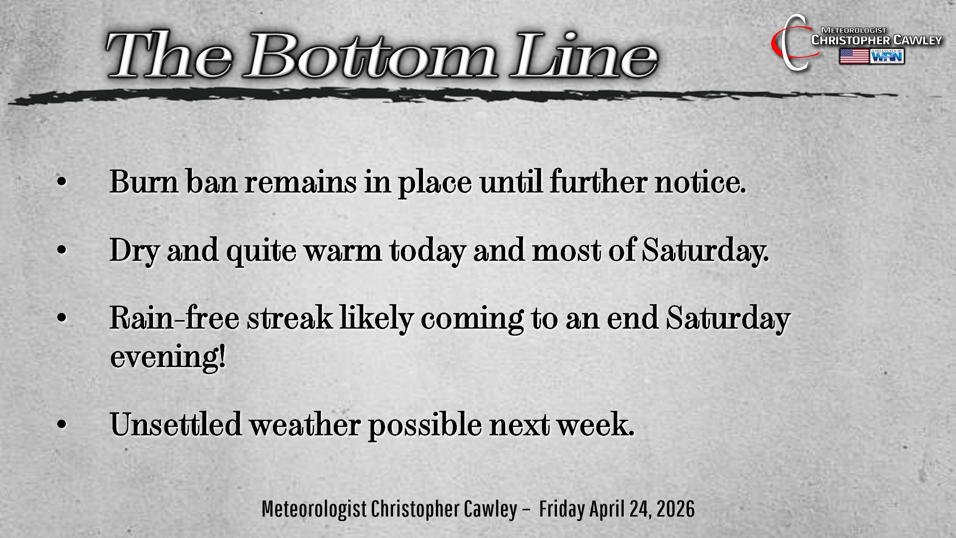 CCN Weather Update for Friday April 24, 2026