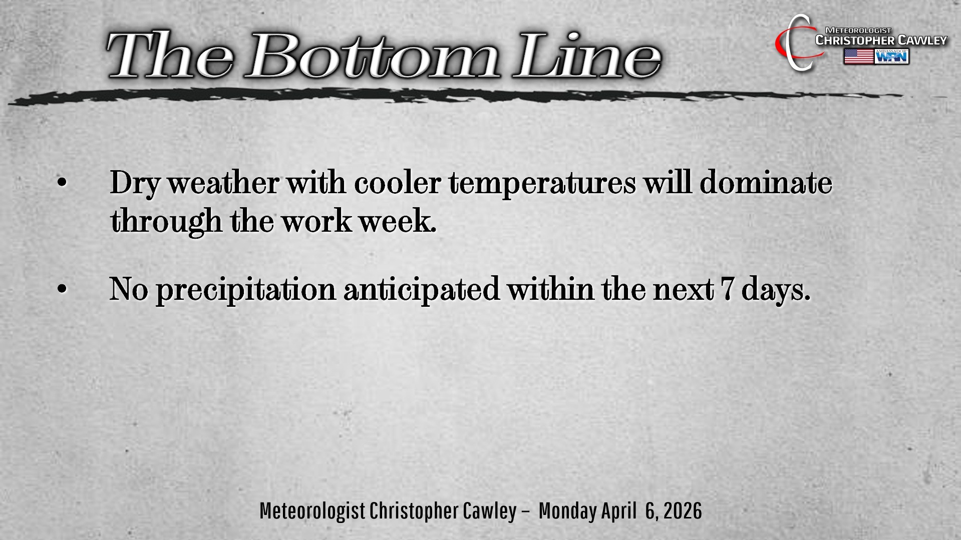 Welcome to the Monday edition of the CCN Weather Update! I hope everyone had a wonderful Easter weekend.