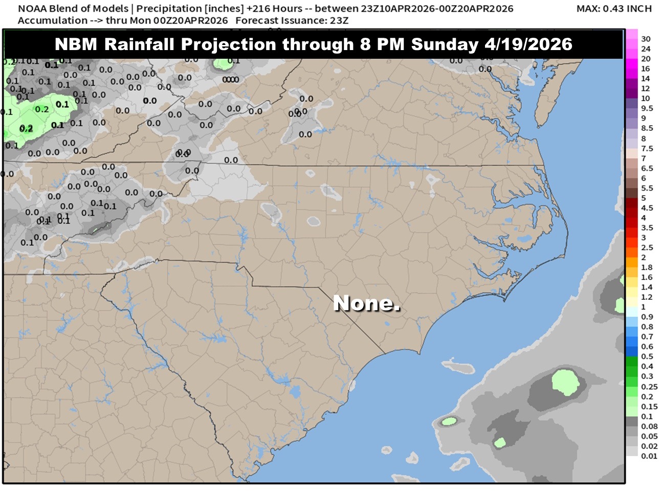Not a drop of rain is expected now through APRIL 19th. That’s NEXT SUNDAY, yall.
