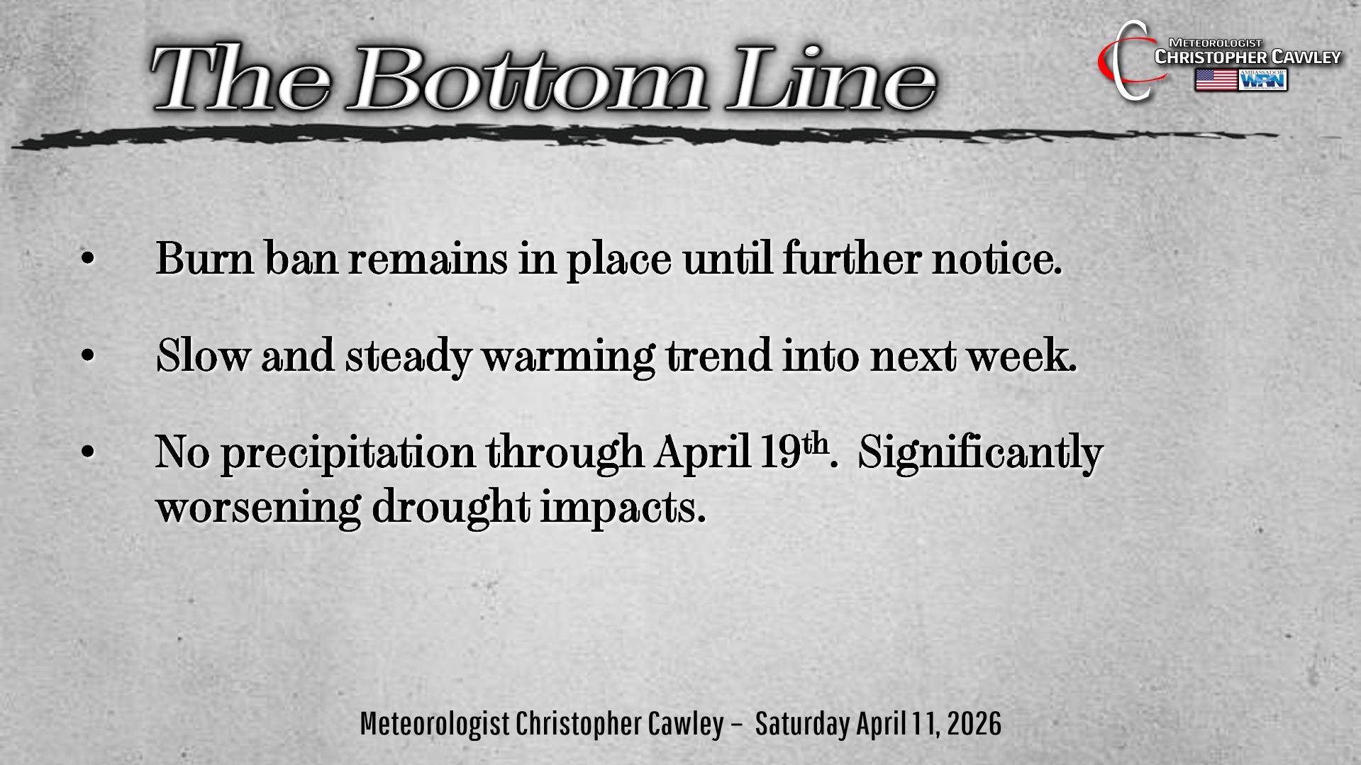 CCN Weather Update for Saturday April 11, 2026.