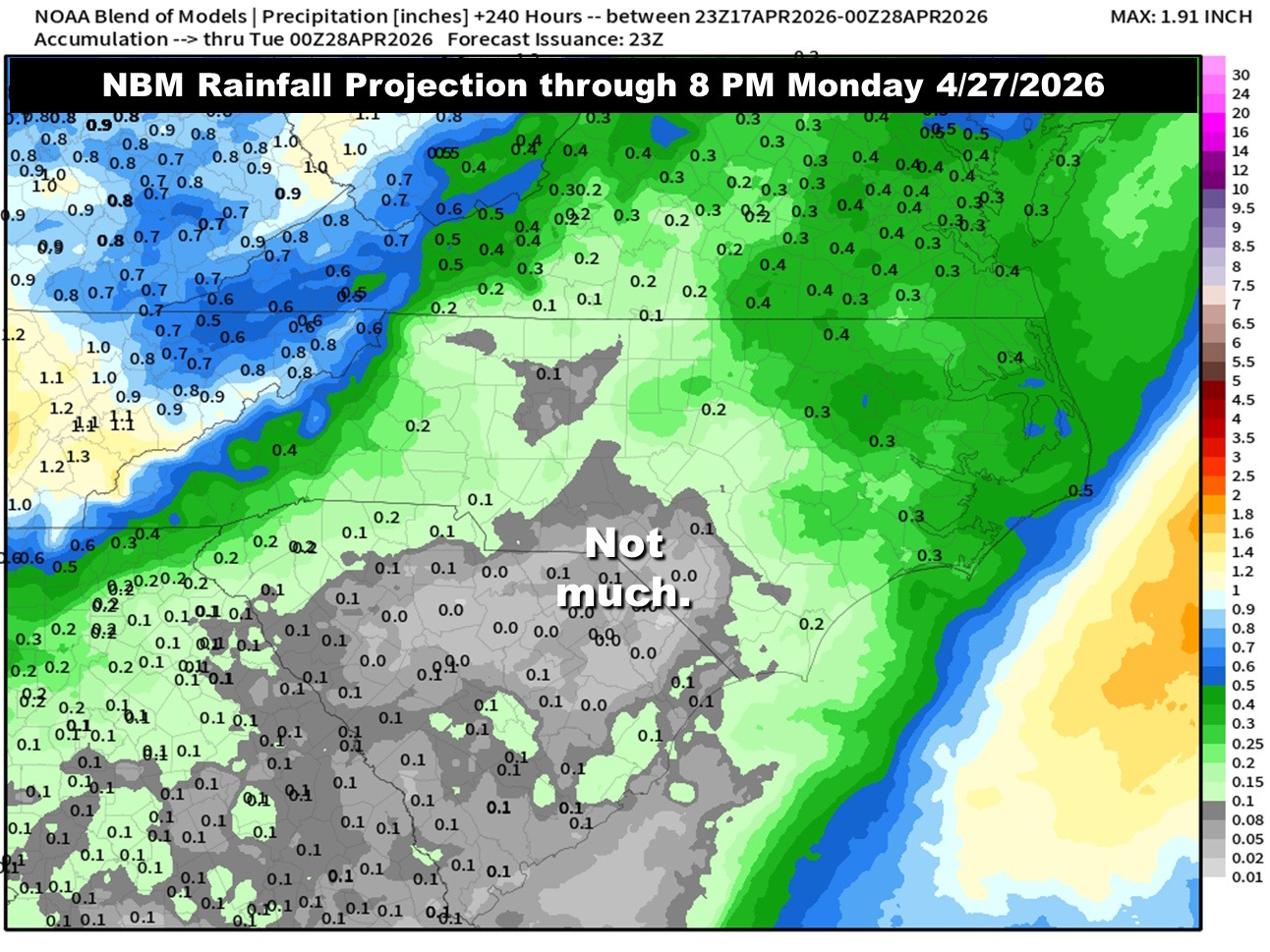 Even with the potential for some showers on Sunday (see below), model blend rainfall projections for the next 7-10 days looks pretty slim.