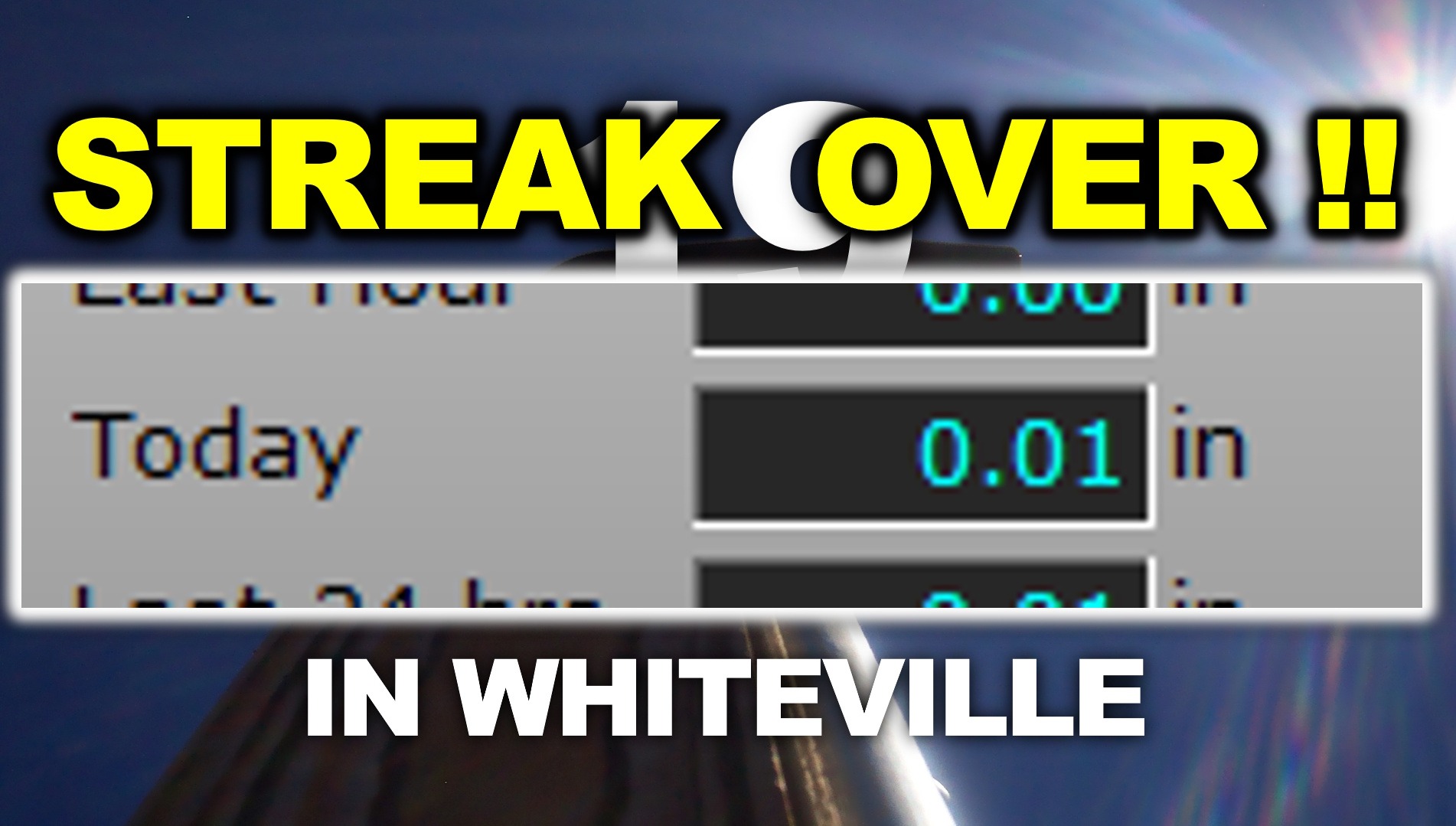 YES!!! The streak is OVER!!! One-one-hundredth of an inch of precipitation occurred at my station in Whiteville on Saturday. It’s… nothing… but it’s something that wet the ground.