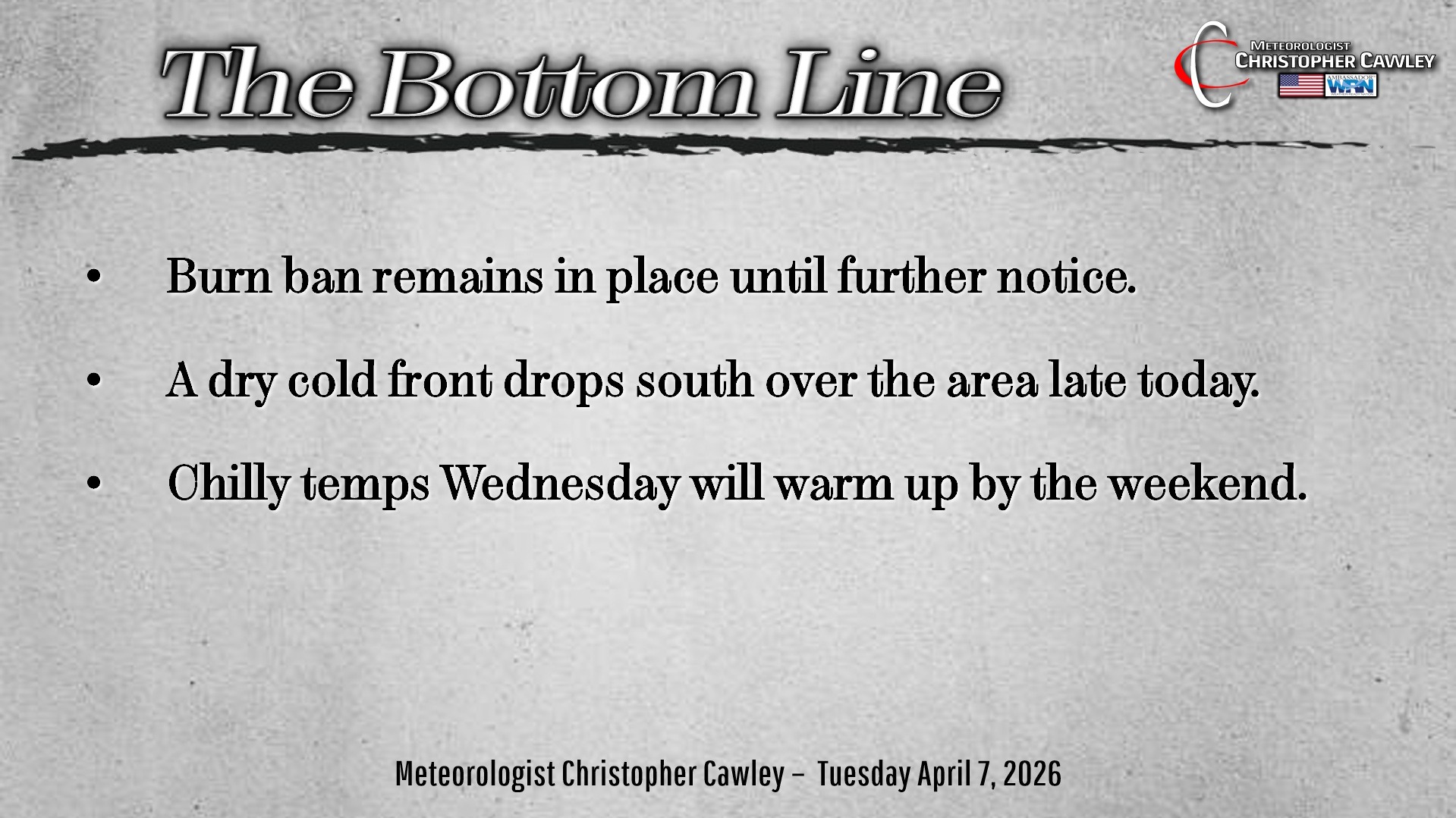 CCN Weather Update for Tuesday April 7, 2026.
