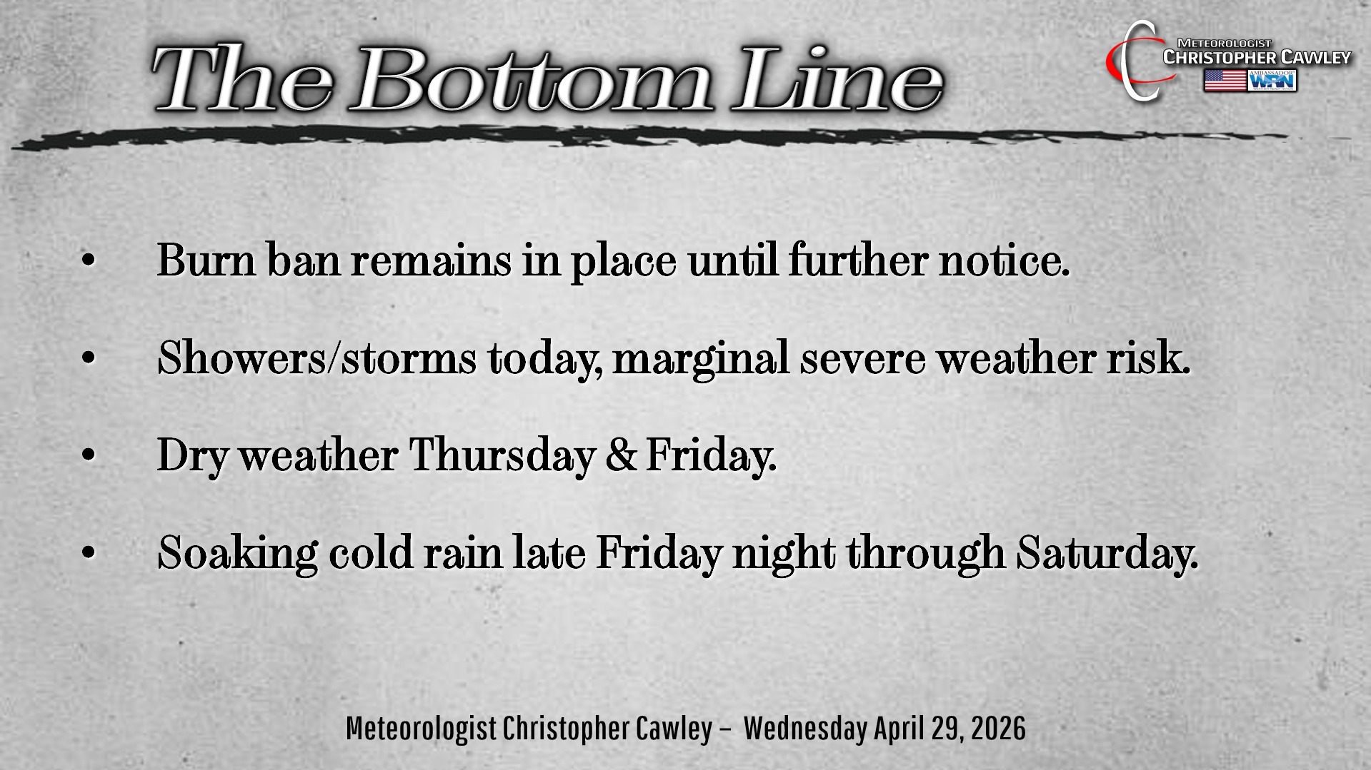 CCN Weather Update for Wednesday April 29, 2026