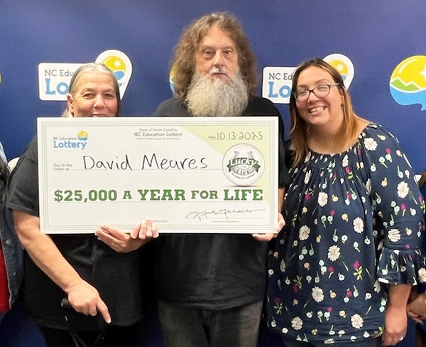 David Meares of Columbus County immediately thought of his family after his $2 Lucky for Life ticket won him a $25,000 a year for life prize. “Family is the number...
