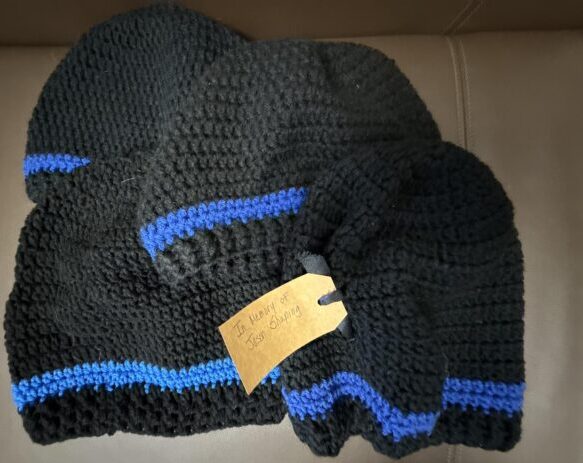 Pam’s mom, Pattie, crocheted beanies for Brunswick County Officers as gifts in memory of her late husband. These thoughtful gift arrived just in time for the cold weather, and truly...
