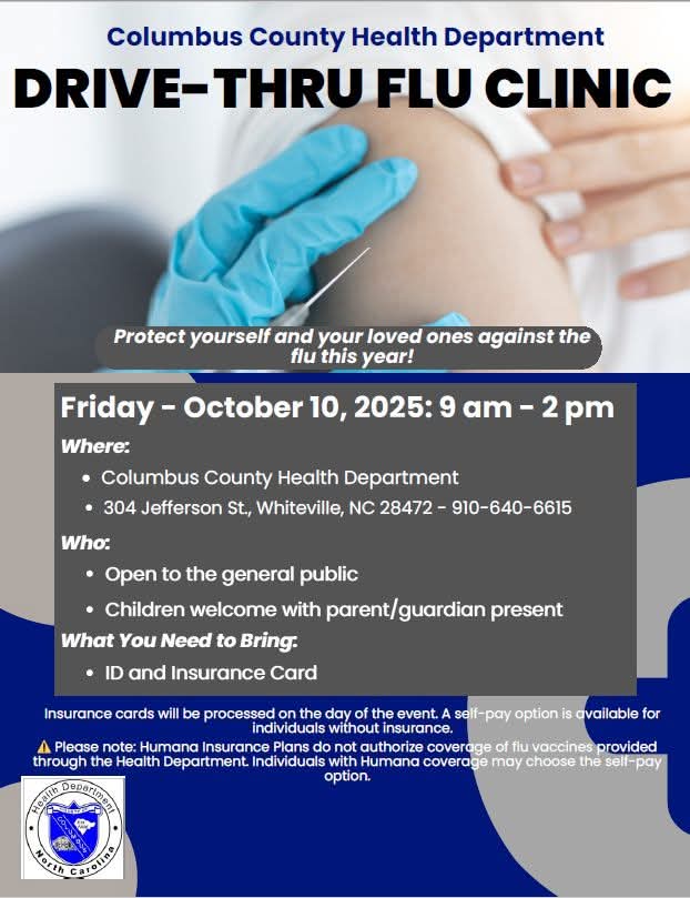 Flu season is upon us — keep yourself and your loved ones protected this year! Drive-Thru Flu Vaccine Clinic 📅 Friday, October 10, 2025 🕘 9:00 AM – 2:00 PM 📍 Columbus County Health Department [Read More]