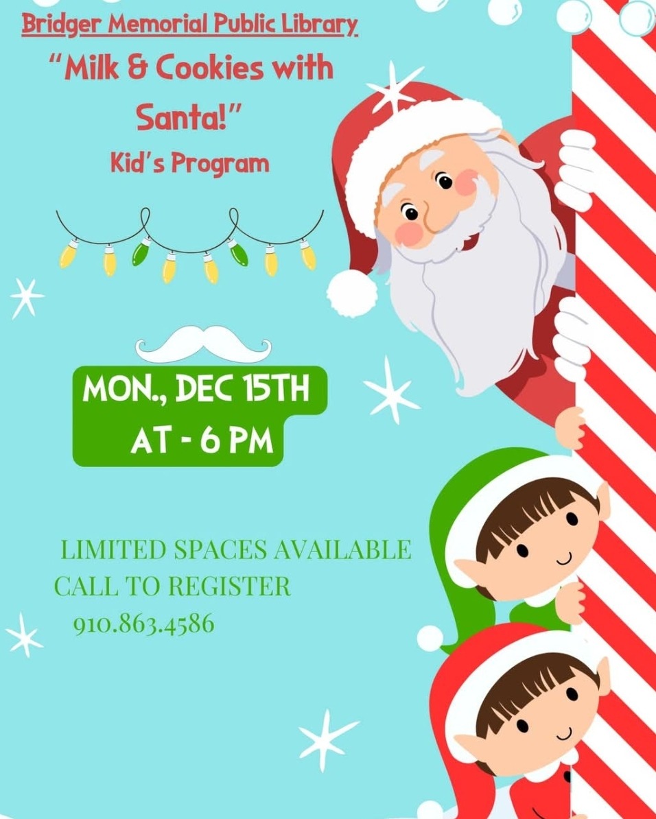 Join Us for Milk & Cookies with Santa at Bridger Memorial Public Library! 🍪🎅 313 S Main St, Bladenboro, NC 28320 📅 Monday, December 15 ⏰ 6:00 PM Spaces are limited, so be sure to [Read More] |