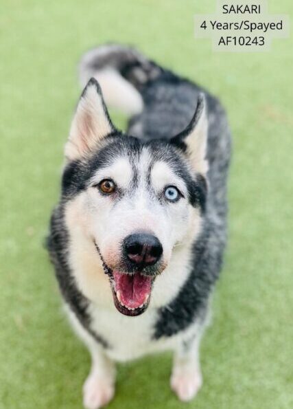 SAKARI is gentle, walks well on a leash, enjoys attention and treats, and at 4 years old, she is a great age to settle in with a family, especially once she realizes that her people will keep her and love her forever!