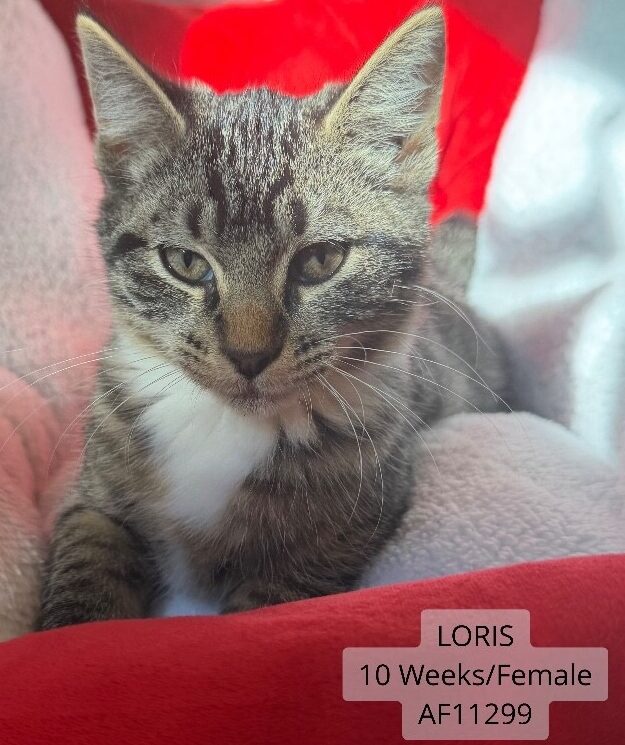 This gorgeous tiny brown tabby just gets more beautiful every day! LORIS has a sleek brown tabby coat with white. LORIS promises to give back two-fold every bit of love that she receives, and we know she means every little mew and meow of what she says!